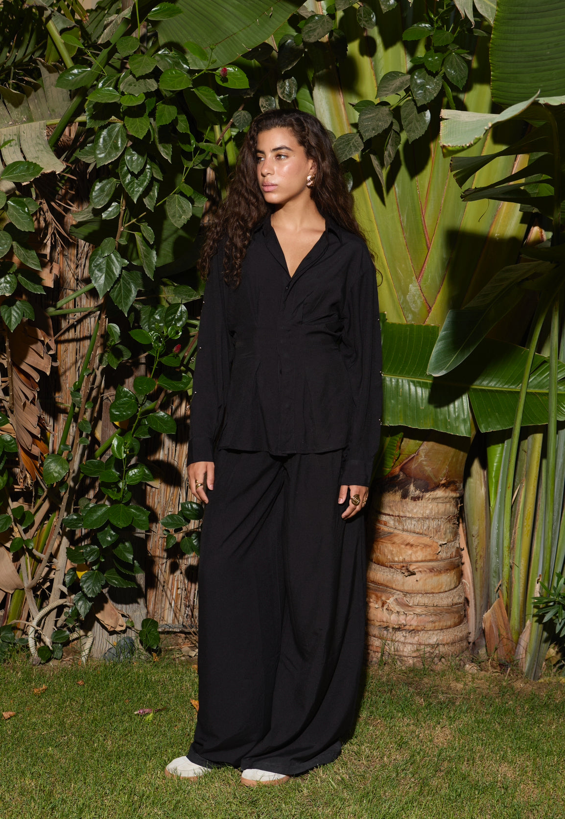 Low-rise black pants, cut with soft front pleats, side-seam pockets and a concealed zip-and-button fastening at the waistband —dry clean only.
